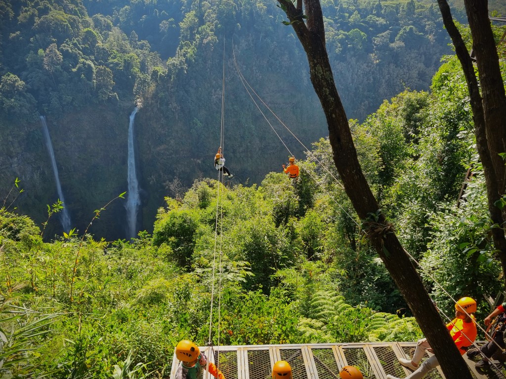 Över den djupa dalgången satt några vajrar: en Zipline! En grupp med ungdomar fick en genomgång, och sedan bar det iväg. Först ut var en tjej som med ett krampaktigt leende gjorde v-tecknet när hon fotograferades av medåkaren, vars arbetsuppgift var att dokumentera färden. Själv ägnade jag mig åt lite stillsamma botaniska utforskningar istället; där fanns orkidéer som växte som epifyter (på träd) och parkförvaltarna hade varit vänliga nog att sätta upp skyltar med latinska namn på vissa träd. Latin är toppen, på så sätt fick jag veta att ett träd hörde till släktet björkar och ett annat till släktet ekar.