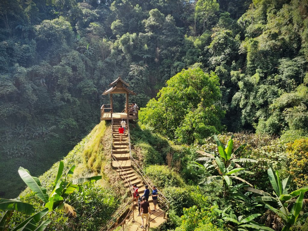 Färden gick hemåt igen, över skraltiga träbroar, genom byar och på lägre höjd förbi stora bananodlingar. Vi var trötta efter en lång dag och många intryck, men efter en kort siesta och uppfräschning på hotellet samlades vi på hotellets takbar för att ta en drink och prata om dagens upplevelser, överens om att det varit en intressant och givande dag!