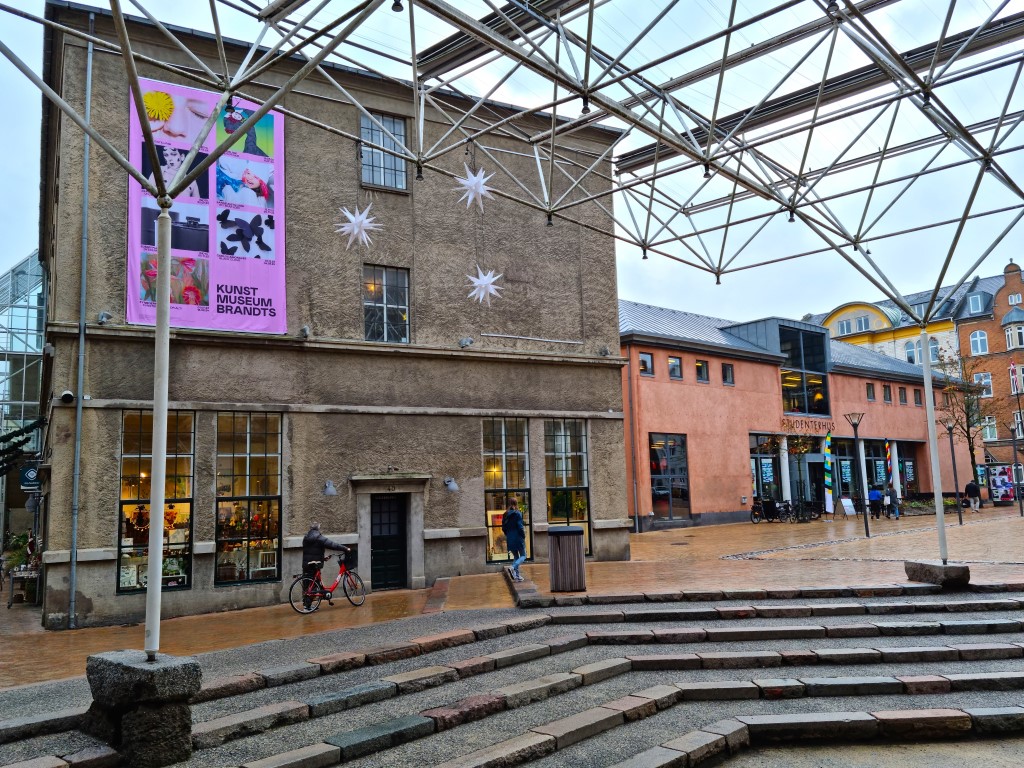 Nix, ingen shopping på mina weekendresor. Hela det forna fabriksområdet är nu vigt åt kulturen. Här finns Kunstmuseum Brandts, som vid mitt besök visade tre separata utställningar: 250 år i dansk konst, österrikiska popkonstnären Kiki Kogelnik och Fyndboerne, om tre konstnärspar från Fyn. I en annan byggnad finns Tidens Samling, ett nostalgimuseum med nio uppbyggda miljöer från 1900- till 1990-talet, trevligt för alla med minsta dragning åt nostalgi, och i området finns också konsertlokalen Magasinet och puben Studenterhuset, där jag var på konserter.
