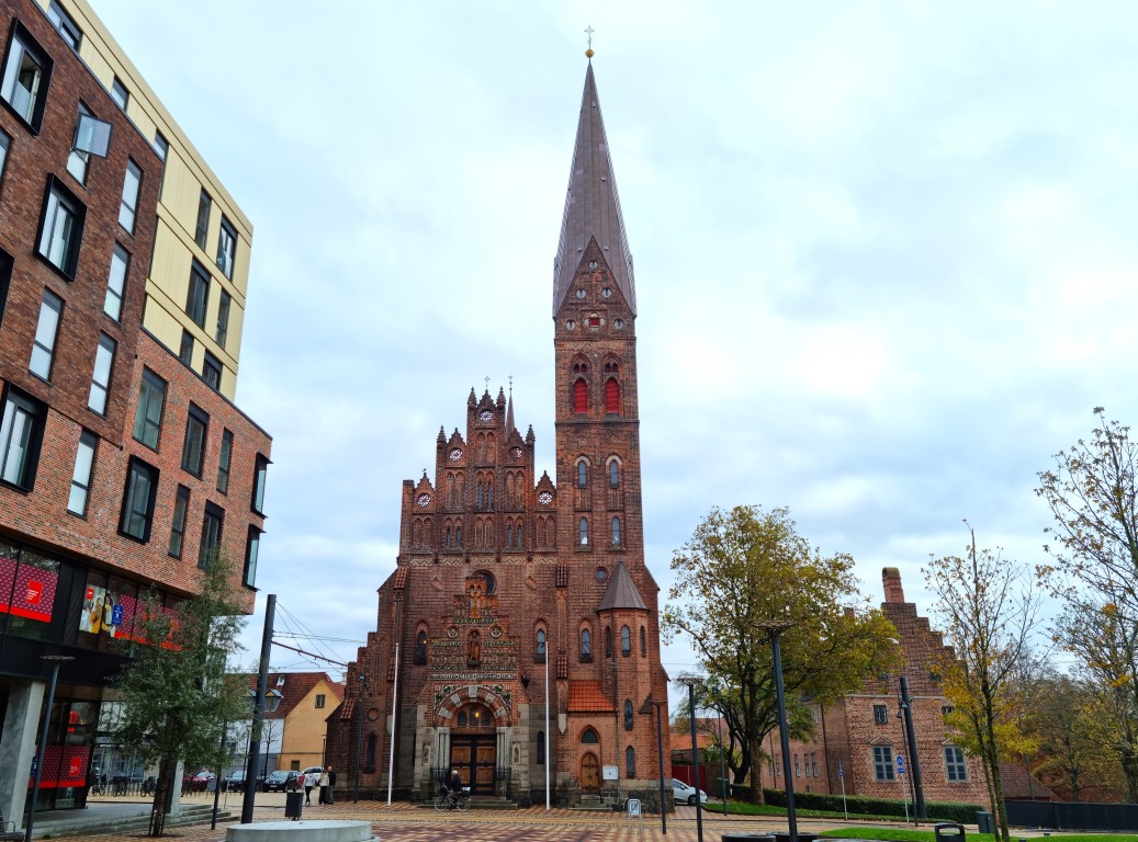 Byn på danska alltså, för en stad är det allt med sina 180 000 invånare. Jag tycker om att vandra runt och titta på hus, kyrkor, torg och parker, och Odenses centrum är möjligt att överblicka på en dag eller två. Förutom avstickarna till Storms Pakhus och Jernbanemuseet norr om järnvägsspåren så höll jag mig i stadens gamla delar söderut fram till Odense å. Här ligger H.C. Andersens Hus, hans barndomshem och Brandts klædefabrik, men också många vackra byggnader som domkyrkan, rådhuset, teatern och pittoreska korsvirkeshus.