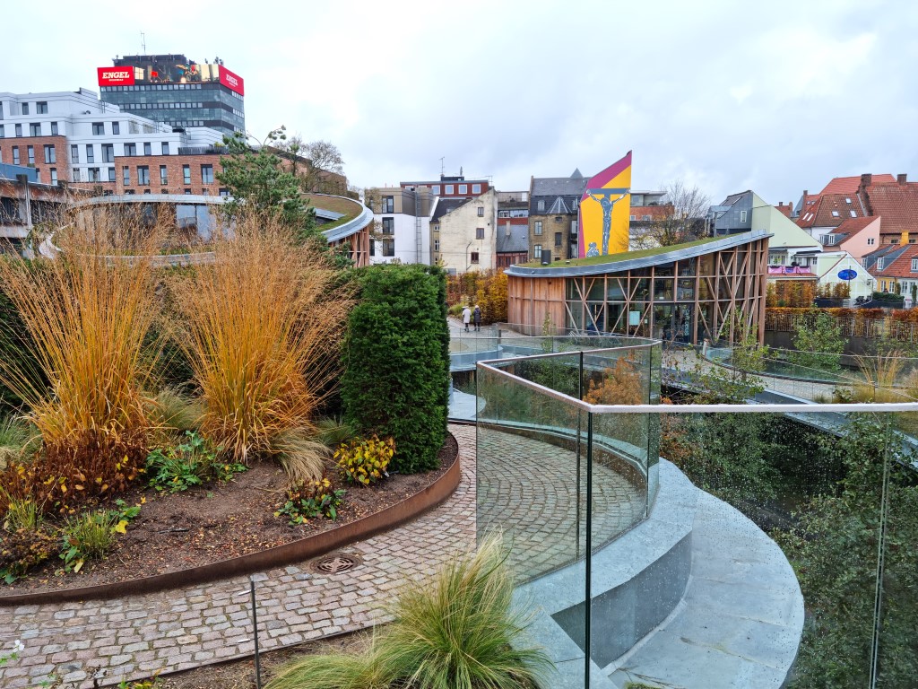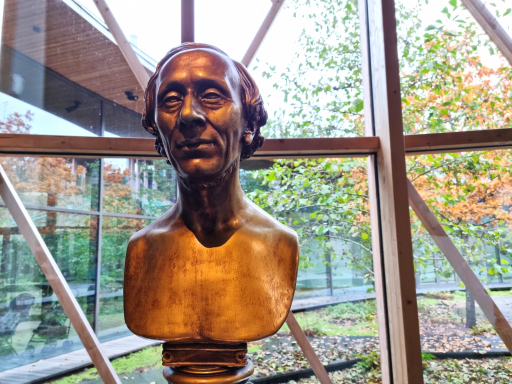 Andra delen utgår från hans sagor, med lite lekmöjligheter för alla barn och oss vuxna med barnasinnet kvar. Prinsessan på ärten, Kejsarens nya kläder, Den fula ankungen, Flickan med svavelstickorna med flera – vilka klassiker! Jag måste nämna arkitekturen också; den japanske arkitekten Kengo Kuma har utformat huset i form av sammanlänkade organiska former med växtlighet på tak och gröna ytor runt omkring.