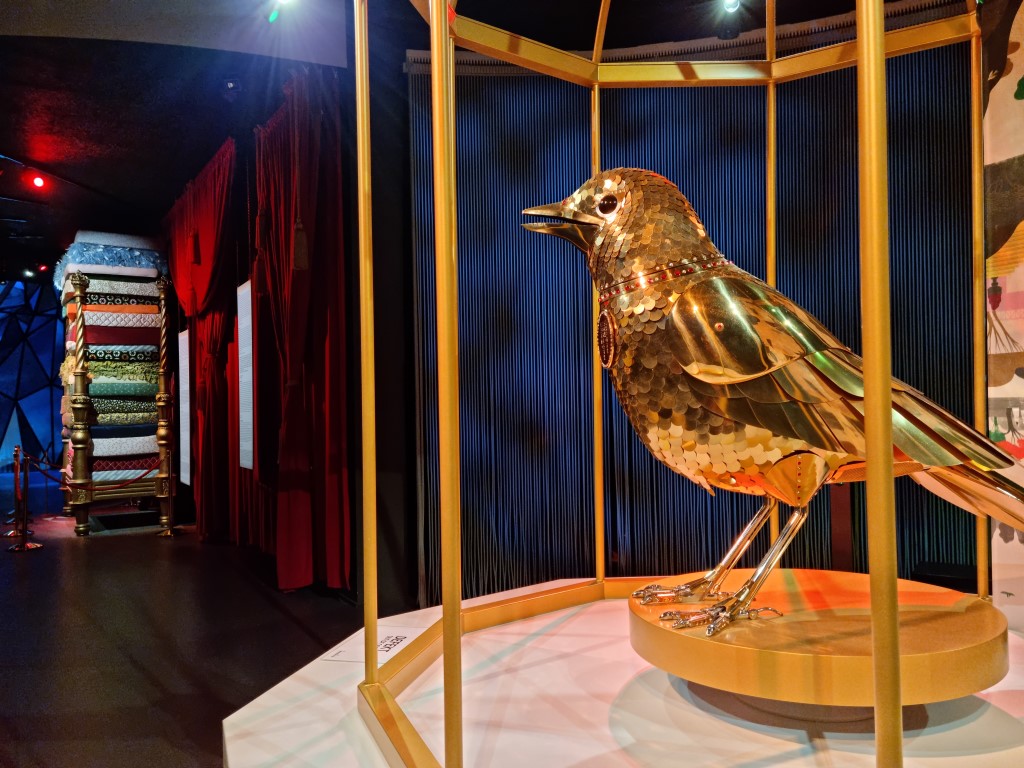 H.C. Andersens Hus är inget vanligt museum, utan mer ett interaktivt utställnings- och aktivitetscenter. Första delen av slingan i byggnaden har en tydlig vuxenprägel, och jag fick lära mig mer om författarens liv som var både framgångsrikt, spännande och tragiskt på sitt sätt. Allt berättas i olika suggestiva miljöer, via de hörlurar som ingår i inträdet (och engelska finns som val, tur nog). Hans fattiga men lyckliga uppväxt, hans ambitioner och resor, hans berömmelse och olyckliga kärlekar, bland annat till den svenska sångerskan Jenny Lind.