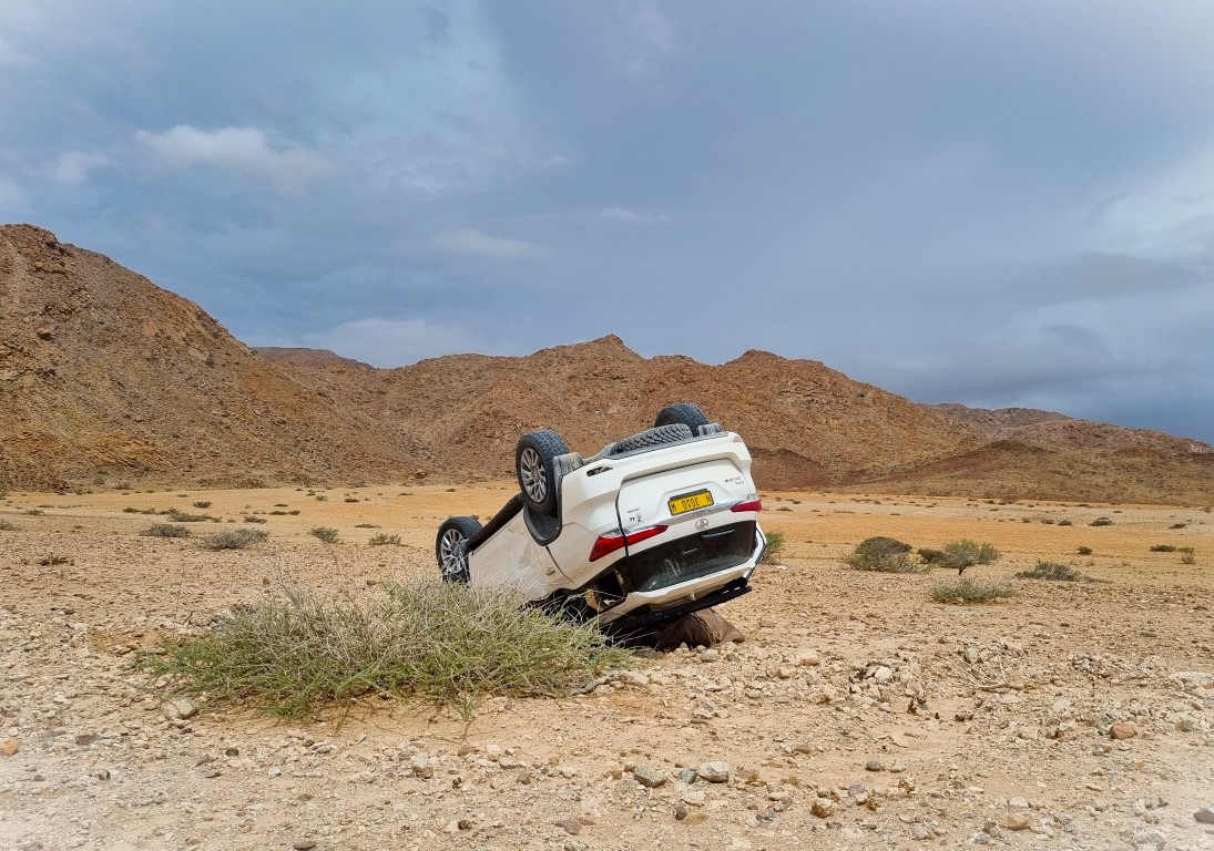 En stund senare ser vi en bil som nyligen voltat. Hjälp är redan på plats och passagerarna sitter tillsammans en bit därifrån, säkerligen chockade men förhoppningsvis oskadda. Knagglig grusväg, feldoserade kurvor och lite för hög fart är en farlig kombination, det vet jag som kört lantbrevbäring i många år. Vår chaufför är märkbart tagen av synen, men han har verkligen varit en exemplarisk bilförare under hela resan och vi känner oss helt trygga.