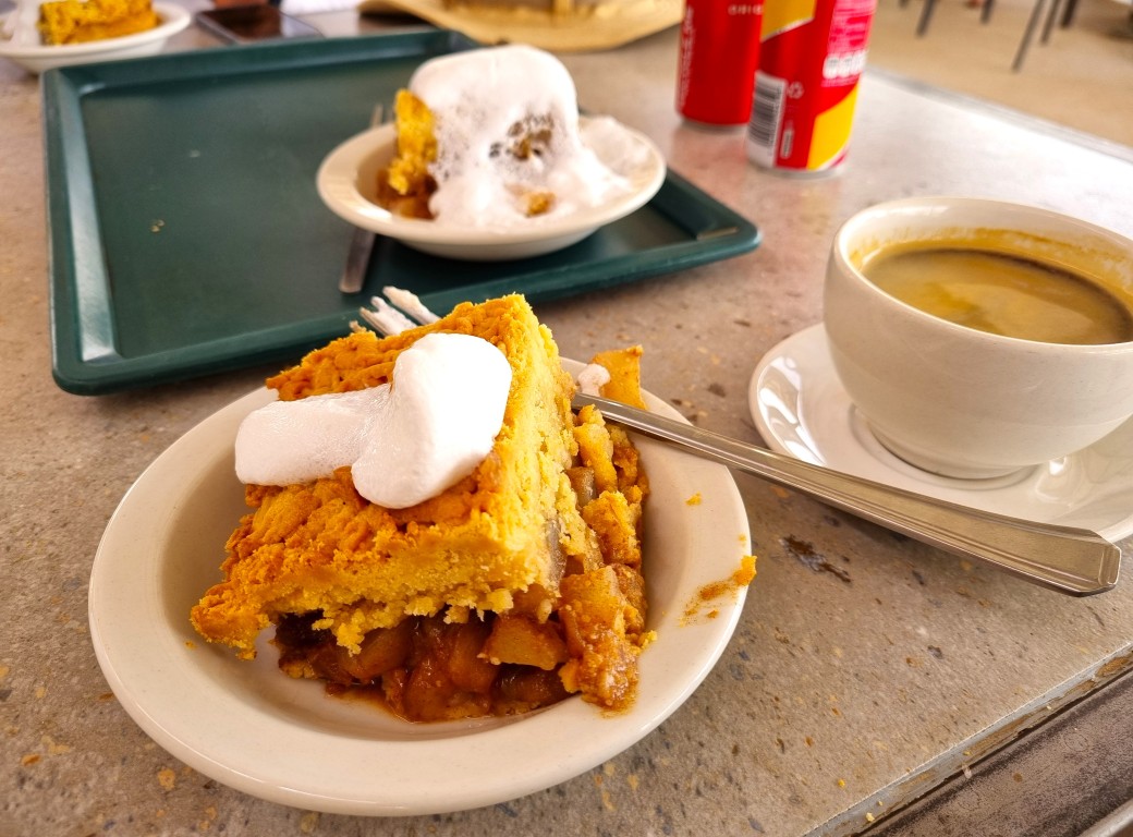 Platsen ger mig Vilda Västern-vibbar, med fotogeniska skrotbilar utplacerade som från tiden för bosättningens första år. Solitaires signaturrätt är den tyska äppelpajen, mäktig med äpplen, russin och grädde.