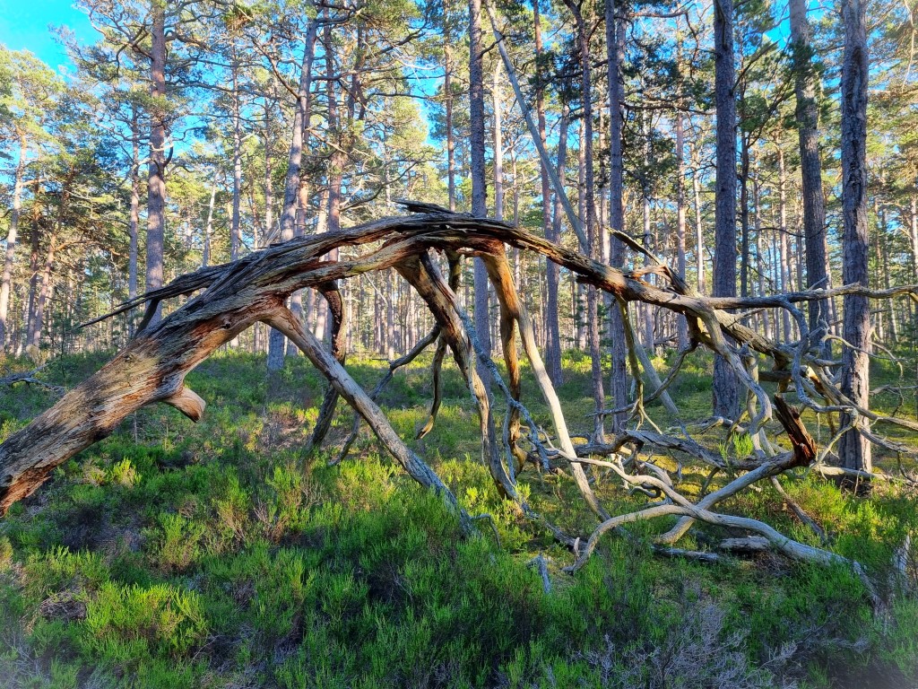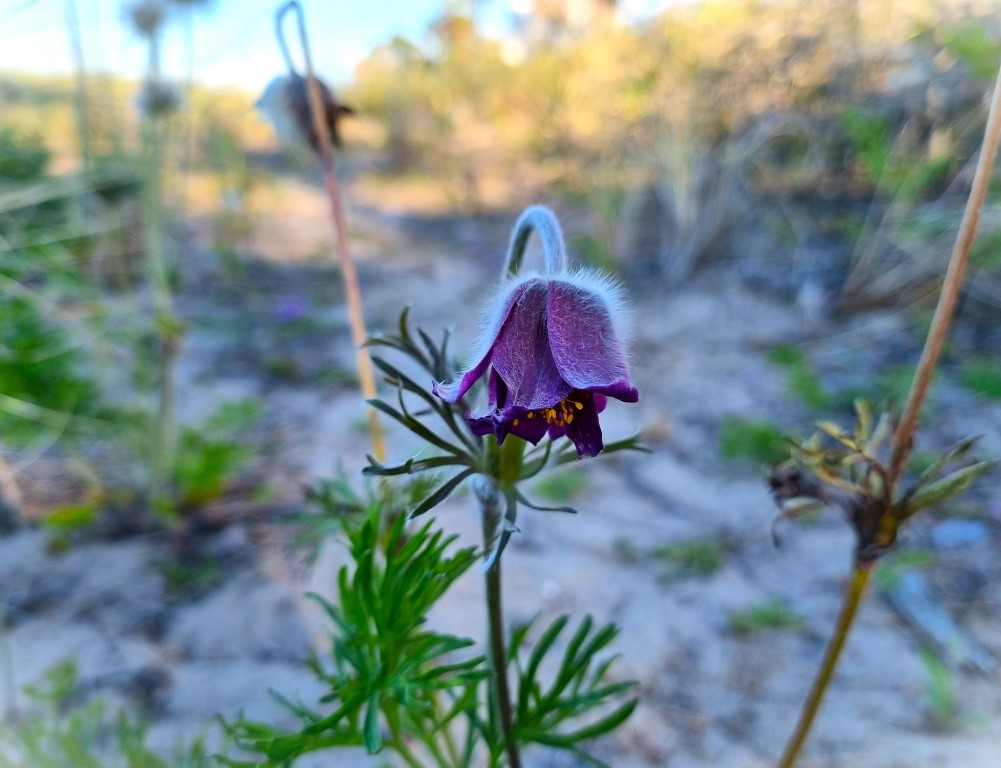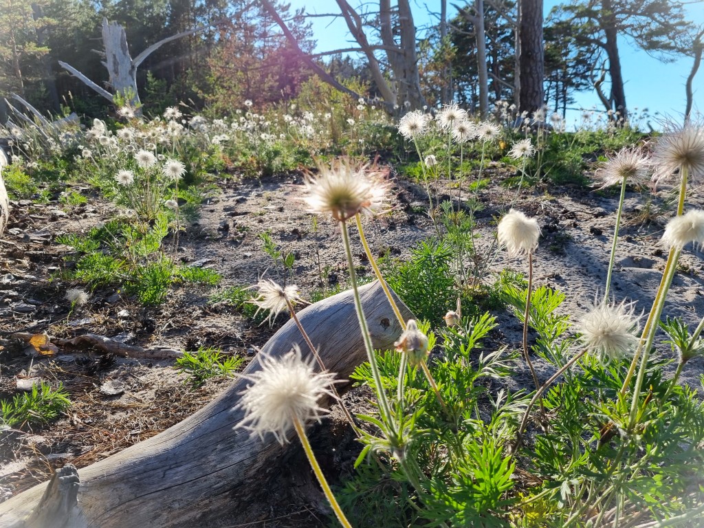 Min vandring går tillbaka genom den trolska tallskogen till lägerplatsen. Som en extra bonus finns det gott om vackra cerise orkidéer utmed leden, av en art jag aldrig sett förut: rödsyssla (även kallad röd skogslilja), och i öppnare områden enorma mängder fältsippa; de flesta överblommade med fluffiga fröställningar. En annan positiv upplevelse är avsaknaden av myggor, och detta ska visst bero på bristen på sötvatten att kläckas i. Summan av plågorna förblir dock konstant på något sätt, tallskogen är full av vildsinta myror som anfaller och biter mig i anklarna om jag inte går snabbt nog.
