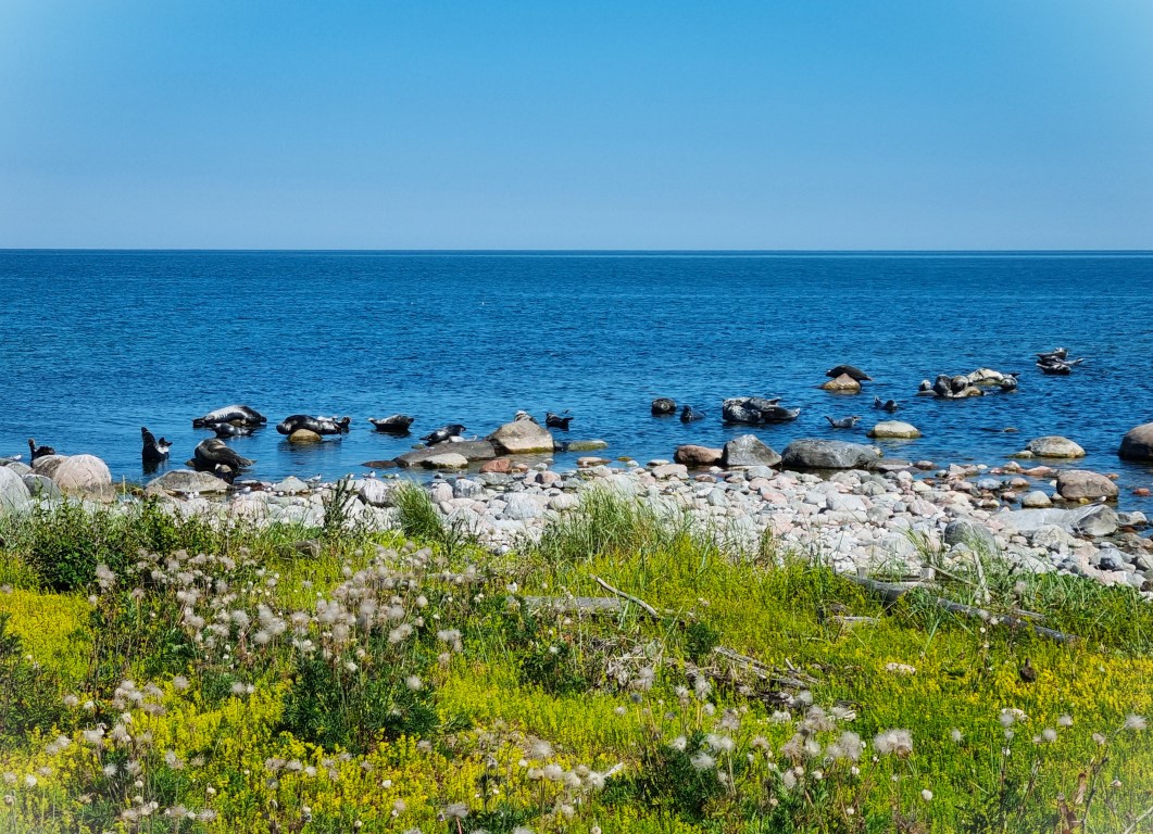 Det blir alltså leden tillbaka till Las Palmas och sedan ytterligare två kilometer till Säludden, ett område där sälarna är fredade men med ett gömsle där man kan spana genom öppningar i ett plank. Vilken mäktig känsla! Arten är gråsäl, den enda av Sveriges tre sälarter som håller till här. Jag räknar till minst tjugofem och lyssnar andaktsfullt till ljuden de gör; som något mellan råmanden och snarkningar.