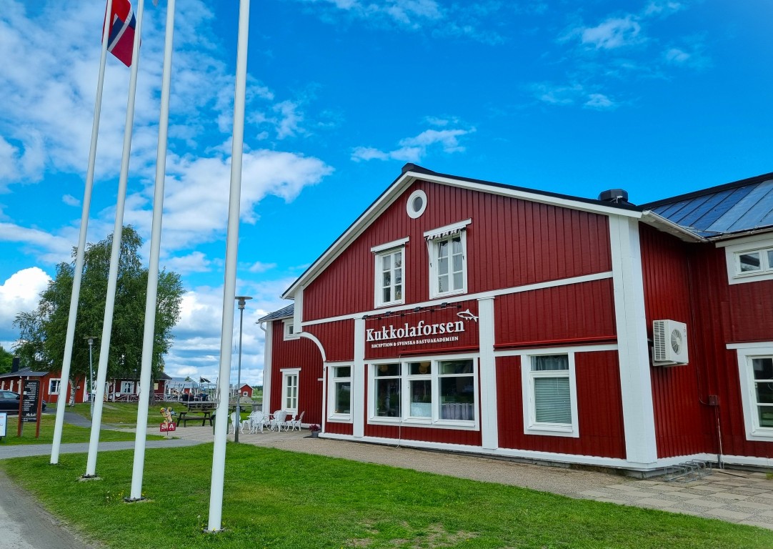 Kukkolaforsen ligger knappt en och en halv mil upp i Tornedalen, och från hållplatsen är det bara drygt hundra meter ner till anläggningen Kukkolaforsen Turist & konferens, med restaurang, camping och en liten kulturby. De gamla husen hade en gång i tiden funktioner med koppling till fisket och tillgången på vattenkraft: fiskebodar, kvarn och sågverk. I en stuga pågår en utställning med fotokonst; vackra motiv från området.