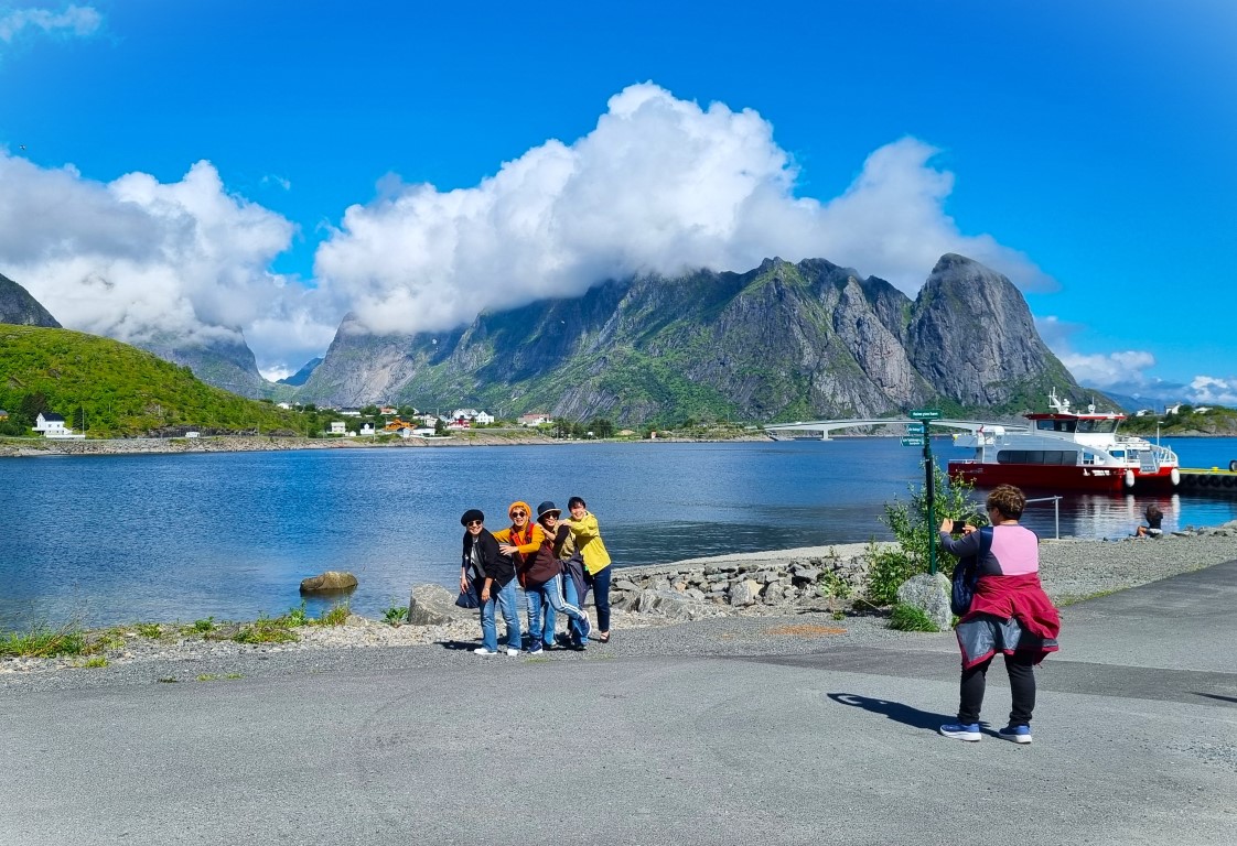 Några asiatiska damer roar sig hjärtligt på Lofoten!