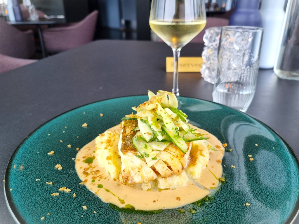Torsk med lent potatismos och skaldjurssås