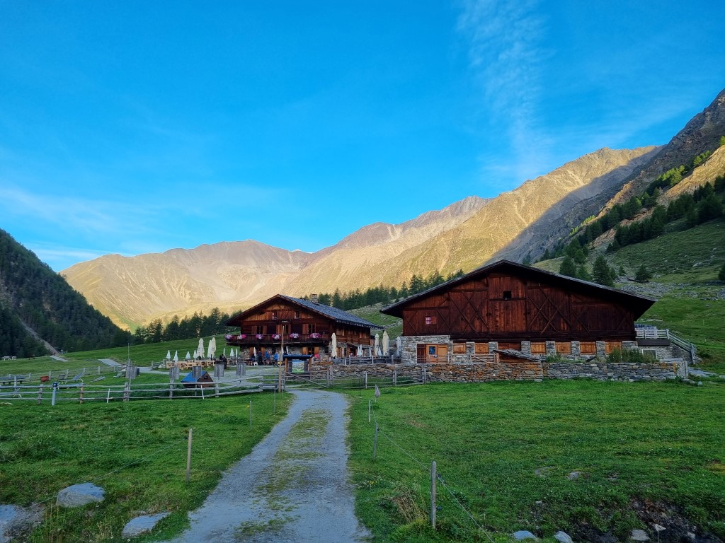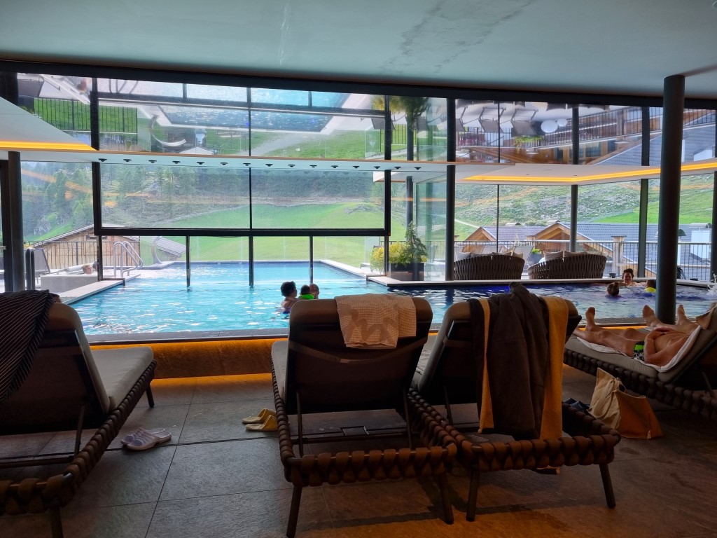 Nere i den vackra dalen brusade ännu en fors mellan berg, skog och betesmarker, och vi följde den fram till den lilla byn Zeppichl med kanske sex – sju hus, där vi skulle bo på Zeppichl Mountain Residence. Som namnet antyder ett lyxigare boende än de tidigare, men hotellrummen var fullbokade och jag hade istället bokat plats i annexet, i deras speciella vandrarrum med tio bäddar för veckans lägsta pris: 35 euro inklusive frukost. Jag utnyttjade ändå deras SPA-avdelning på tredje våningen mot extra kostnad på 20 euro, med pool, bubbelbad, massagedusch, bastu, hallonsaft och torkad frukt. Jag hade också bokat bord på hotellets restaurang som var riktigt lyxig, vi beslöt att unna oss en trerättersmeny och kände oss riktigt på topp!