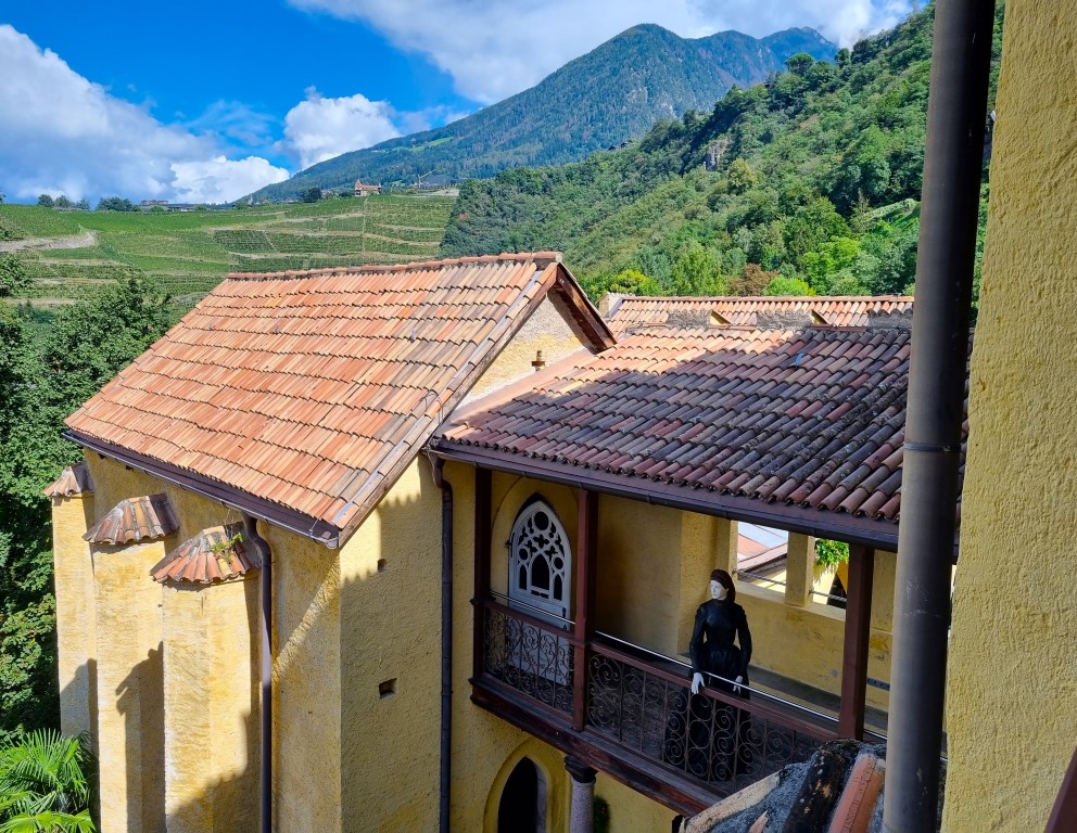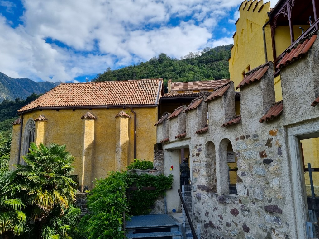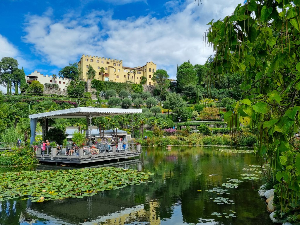 Vi hade siktet inställt på Trauttmansdorff, ett slott beläget två och en halv kilometer från stadens centrum och en av Sydtyrolens främsta turistattraktioner. Slottet har anor från 1300-talet men fick sitt nuvarande utseende 1846, och här bodde Sisi under två av sina vistelser i Merano. Vid det senaste sekelskiftet fick slottet en ny roll: en botanisk trädgård anlades och öppnades för allmänheten 2001.