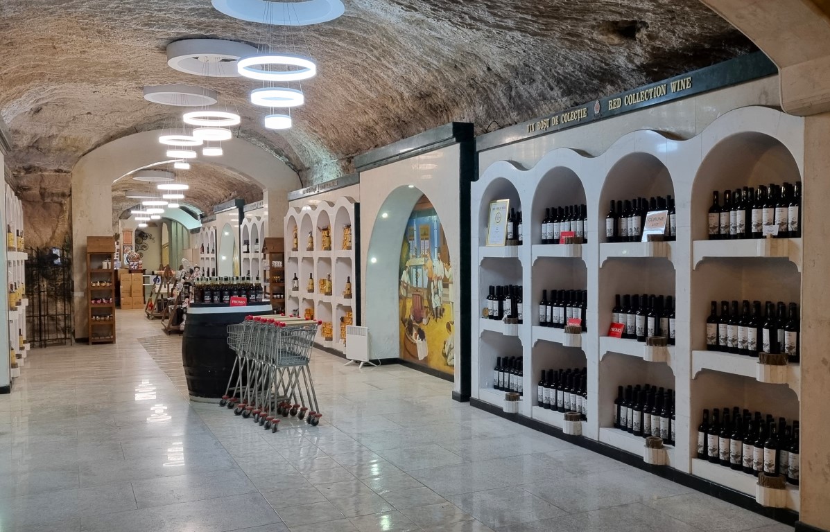 Mileştii Mici producerar både röda och vita viner, mousserande och rosé. Vår tågtur i tunneln avslutas med att vi slussas ut genom den lilla vinbutiken (surprise!). Det går också att beställa till avsmakning med dryck och tilltugg i slutet av turen. I priset för den guidade turen på en timme (ca 210 kr) ingick en gåva: en flaska mousserande vin, och utöver det köpte jag en flaska rött – ännu ej avsmakad.