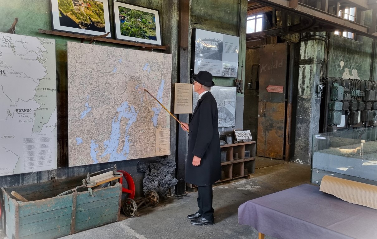 Den äldre mannen som guidade var kunnig och mycket engagerad i sin uppgift; han var klädd som en disponent i början av 1900-talet och inledde med en liten teatermonolog där han anställde oss alla på bruket, med hårda arbetsvillkor under långa arbetsdagar. ”Passar det inte, så står det andra i kö”. Ja, så var det på den tiden. Det framkom senare under visningen att fruntimmer inte var önskvärda till dessa tunga jobb, jag hade troligen hamnat på kontoret – tack och lov!