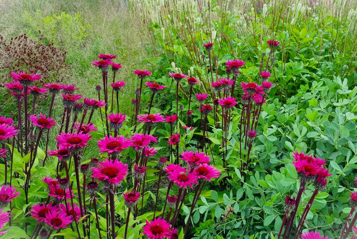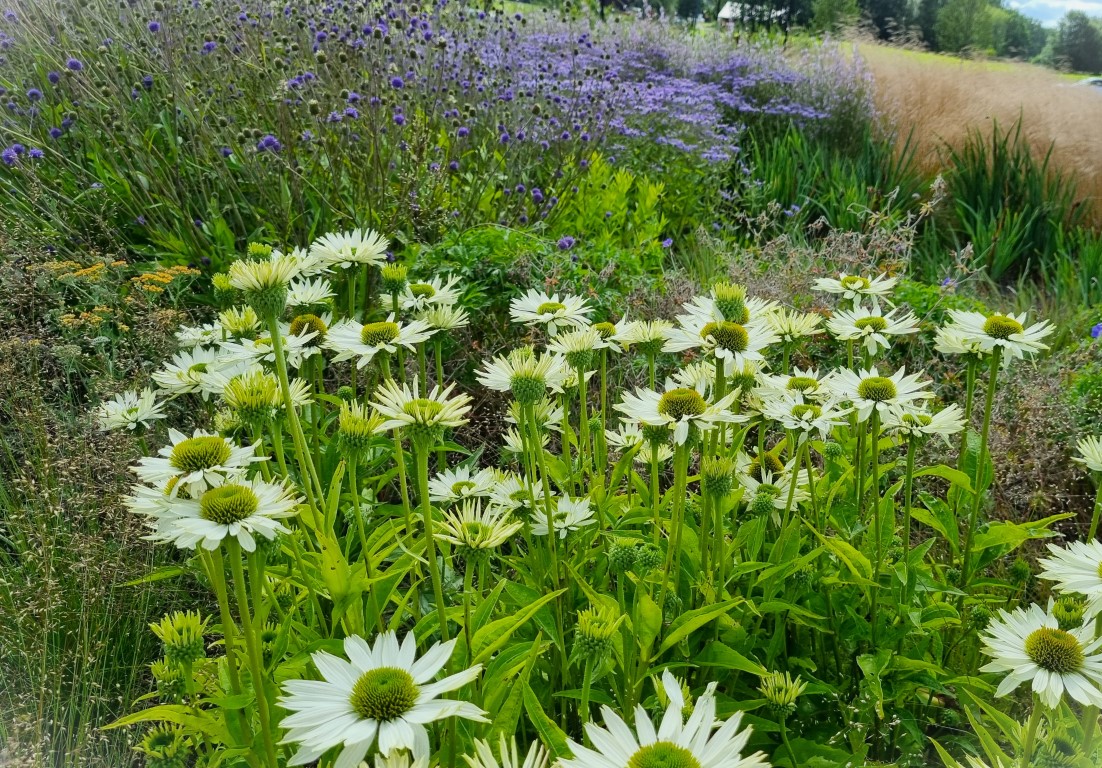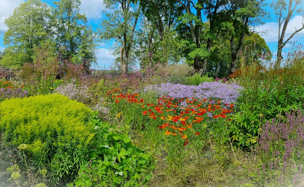 Nu har han skapat en 3 500 kvadratmeter stor perennplantering utanför Vandalorum, något de kallar ”ett monumentalkonstverk som ingår i Vandalorums samling”. Ja, alla trädgårdsodlare vet att trädgården är ett bångstyrigt konstverk. Vissa växter breder ut sig, andra tynar bort. Några är i blomning, andra vissnar. Jag hoppas och tror att Vandalorum kommer att måna om och underhålla sitt konstverk! Nu är det andra året efter att det stod klart, det är riktigt snyggt och ger en mäktig massverkan.