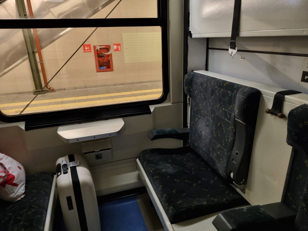 När julafton, juldagen och annandagen passerat gav jag mig iväg, tidigt på morgonen. Buss till Borås och regionaltåg vidare med byte i Varberg, där spår och perronger numera ligger under marknivå. I Köpenhamn gavs lagom tid för lunch på Tivoli Food Hall mitt emot stationsbyggnaden, och sedan gick färden vidare mot Hamburg, där jag åt kvällsmat. Vilket flyt! Sedan var det dags för mitt vanliga snålalternativ: sittplats på nattåget till München. Jag hade bokat en platsreservation genom Tyskland (5,5 euro) för att undvika risken att behöva flytta på mig, men tåget var mindre än halvfullt. Ingen pardon ges, här är fullt upplyst natten igenom och jag fixade min egen lilla mörkläggningsgardin med en schal över huvudet.