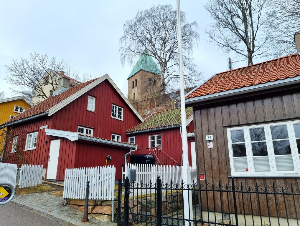 Grünerløkka har jag besökt tidigare men denna gång fortsatte vi vår vandring uppför Telthusbakken med låga 17- och 1800-talshus på ena sidan och kolonilotter på den andra, och vidare upp till Gamle Akers kirke, en medeltida kyrka som är Oslos äldsta byggnad.