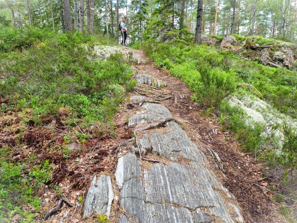 Efter att ha besökt min tjugonde nationalpark förra sommaren var det nu dags att jobba vidare på betinget, och två i Västra Götalandsregionen återstod: Tresticklans nationalpark i Dalsland och Kosterhavets nationalpark i Bohuslän. Regionen är långsträckt och resan hemifrån till Tresticklan tog tre och en halv timme, sonen körde och vi passerade flera störtskurar på vägen men mot slutet segrade solen. De sista två milen mellan Ed och nationalparken pågick ett stort vägarbete som beräknas vara klart först 2025, och bilen knagglade sig fram förbi enkelriktade trafikljus och över stenkross.