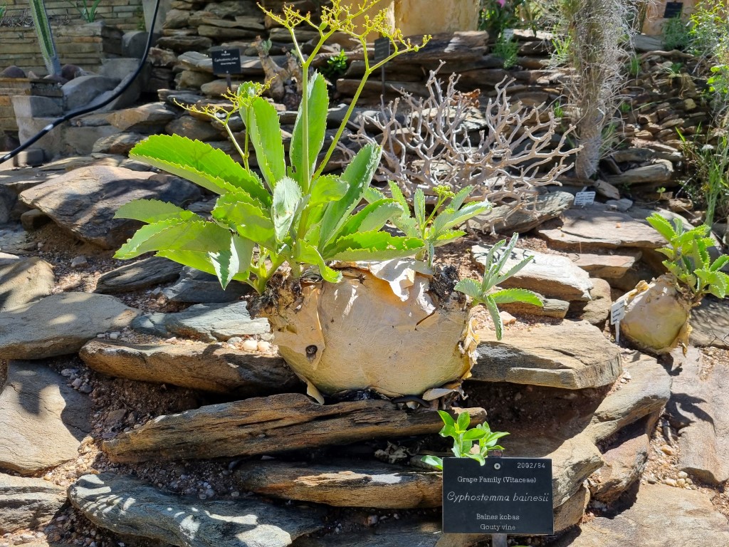 Cyphostemma bainesii – med sin tjocka stam. I familjen vinväxter, och kan tydligen få små oätliga druvor