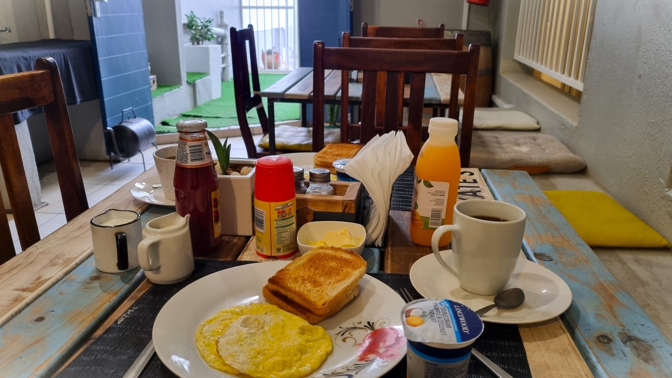 För de återstående nätterna efter rundturen hade jag fattat grejen: vi behöver bo mer centralt. Som sagt, jag prickade in ett boende mitt emellan kyrkan och botaniska trädgården, med flera restauranger inom gångavstånd. Vi var väldigt nöjda, ett lugnt och fridfullt område med möjlighet att gå överallt dit man ville. Här betalade vi 470 kronor per natt för ett tvåbäddsrum med eget badrum och inklusive frukost.