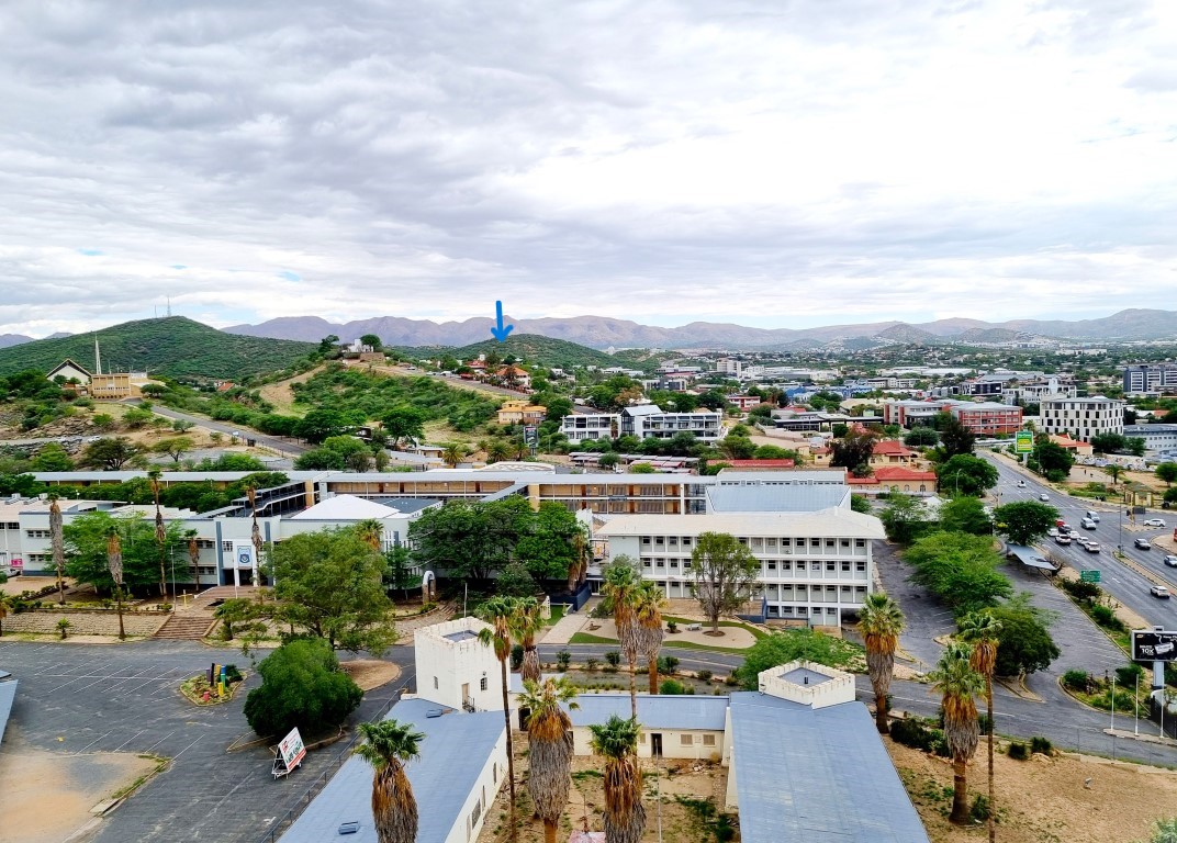 Sista dagen i Windhoek hade vi bestämt oss för att besöka Windhoek Sky Restaurant, belägen högt upp i byggnaden som hyser Independence Memorial Museum. Främst för att få ta del av utsikten, men vi räknade naturligtvis med bra mat också. Vi var ganska ensamma på plats, för inga normala människor äter middag redan klockan 16.00, knappt någonstans i världen. Vi valde att sitta ute på terrassen, för att njuta av vyerna. Maten var bra, men för första gången upplevde jag något som ofta inträffade under min Tanzaniaresa tolv år tidigare: några rätter på menyn gick inte att få för att råvarorna var slut. Det som fanns var i alla fall gott, och vi fick förrätt, varmrätt, ett glas vin och dessert eller drink för cirka 400 kr per person. Och utsikten var värd minst 200 kronor!