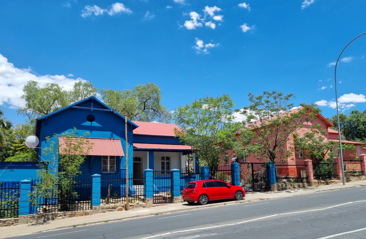 Här finns många färgglada byggnader, främst de äldre husen, men också väldigt mycket nybyggt i glas, plåt och betong. Fult eller snyggt? I vilket fall intressant! En stadsdel som Katutura, en så kallad township och delvis en kåkstad ser naturligtvis annorlunda ut, återkommer till det i kommande inlägg.