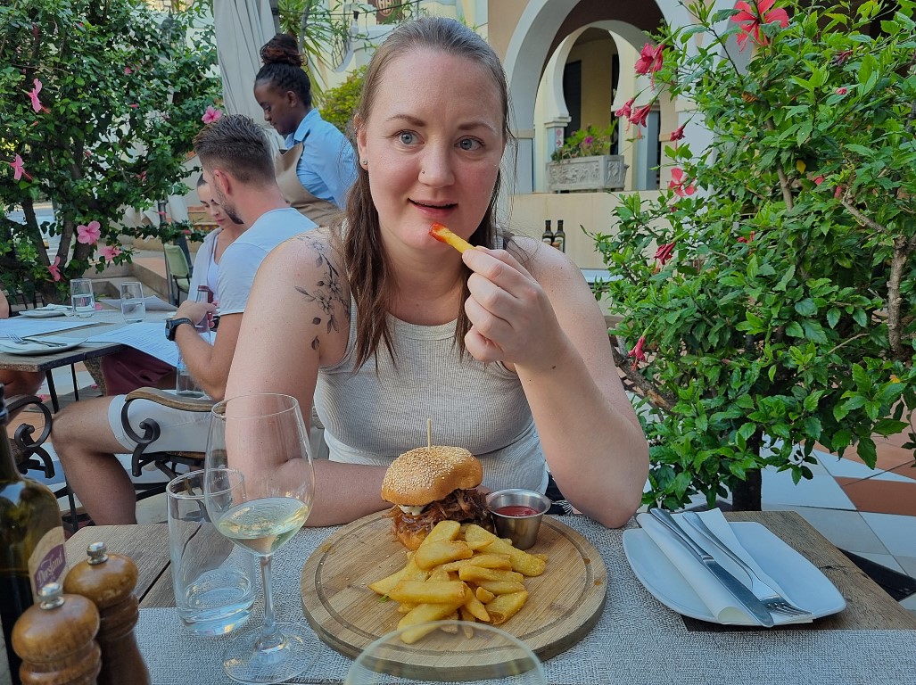 Vår lista på restauranger är väl någon slags ”Best of” från Tripadvisor, men vi hade ingen längtan att bryta ny mark. Gemensamt för dessa restauranger var bra service, fin miljö, stora portioner och god mat. Det fanns mycket ”internationell” mat på menyerna: pizza, burgare, wraps och pasta.