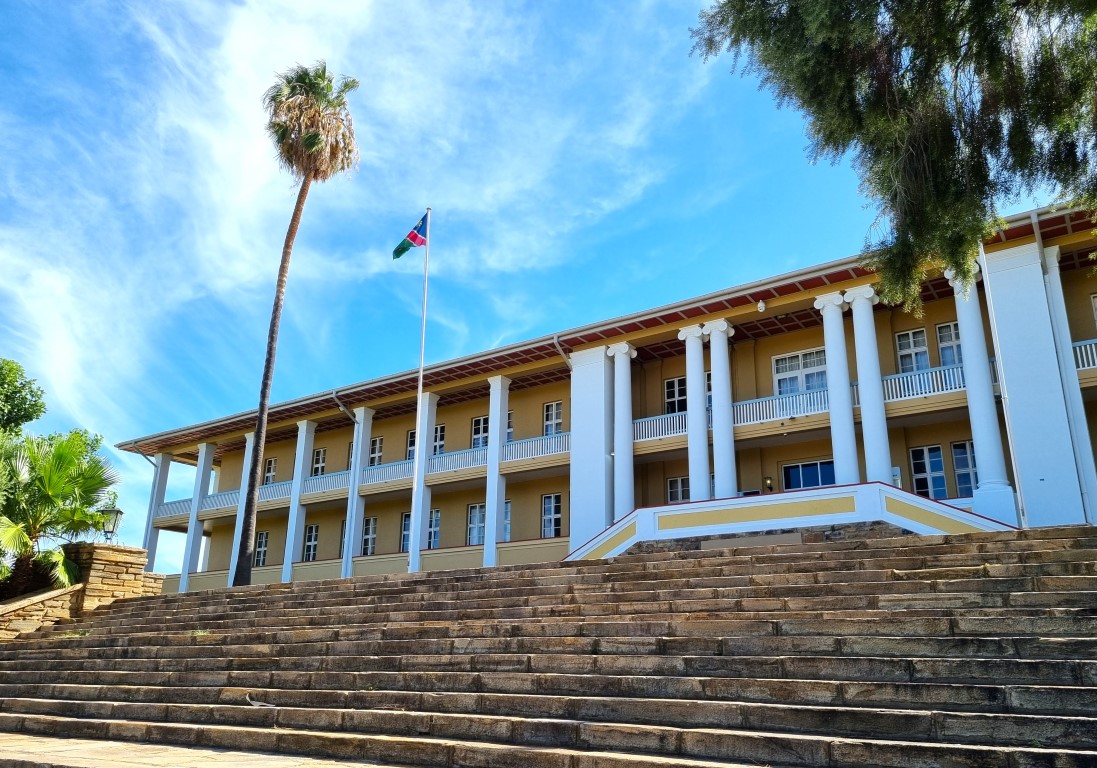 Parlamentsbyggnaden som även kallas Tintenpalast: bläckpalatset, från sin tid som kolonialmaktens administrationsbyggnad och storkonsument av bläck
