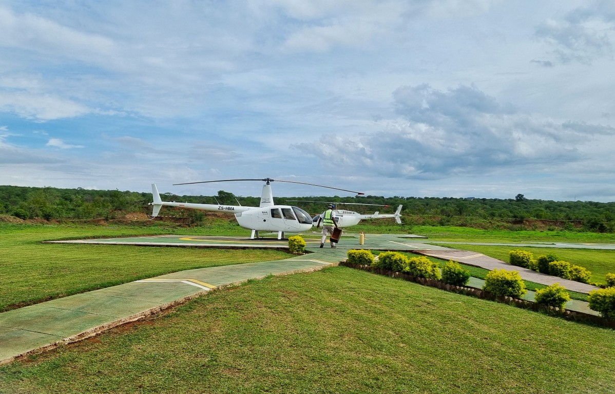 Vi blev hämtade klockan nio, för färd till helikopterstationen strax utanför staden. Jag kände ett litet uns av fördomsfull oro: vilken standard skulle det vara på helikopter och säkerhet? Ingen anledning till oro; allt var verkligen tiptop: från reception, utemiljö, personal och helikopter till information och säkerhetstänk. Vi blev till och med vägda på en våg, oklart vilka gränsvärden som gällde men vi klarade testet. Företaget hette Chikopokopo – efter hur en helikopter låter, förklarade vår guide.